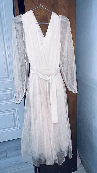 2) Нежно-розовое (пудровое) платье миди с фатиновой накидкой: