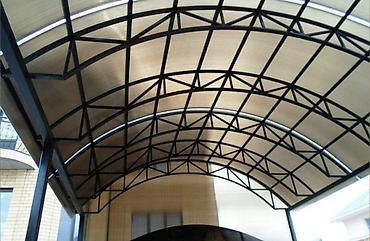 Навесы и каркасы из металла с облицовкой поликарбонатом - Изготовление арочных навесов для двора, автостоянки, террасы, проходов и входных групп. - Материалы: профильная сталь (квадратная труба), ...