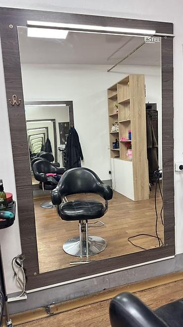 Пр зеркала для парикмахера и визажиста Белые на железной раме с выдвижным белым ящиком и разеткой на столешнице. Высота 1,9м, ширина 1м, глубина 40см, зеркало 80см. Цена 15000сом. Сост отличное ...