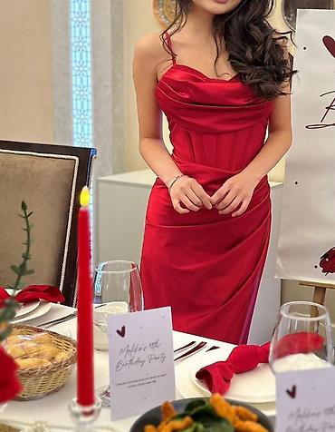 Вечернее платье в насыщенном красном цвете.