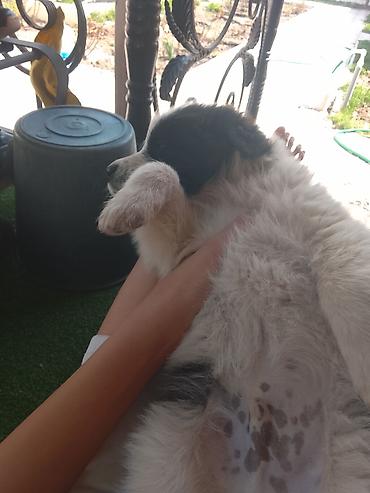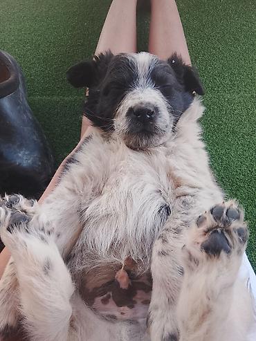 - На выбор несколько щенков разной окраски: черный, бело‑черный, рыжевато‑коричневый.