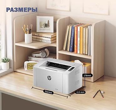 Принтер отличается очень компактным корпусом и легко размещается даже на небольшом рабочем столе, полке или в домашней рабочей зоне. Его размеры составляют 331 × 215 × 178 мм, а вес — около 4,18 кг. Несмотря на небольшие габариты, HP Laser 105W обеспечивает высокую для своего класса производительность: скорость печати достигает 20 страниц в минуту, вывод первой страницы занимает около 5 секунд, а разрешение до 1200 × 1200 dpi позволяет получать четкие, аккуратные и хорошо читаемые документы. Эта модель отлично подходит для печати учебных материалов, рабочих файлов, бланков, счетов, договоров и другой повседневной документации.