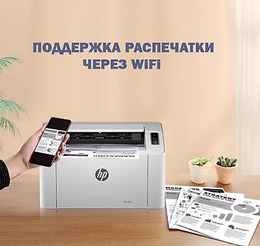 HP Laser 105W в версии USB + Wi‑Fi с поддержкой компьютера и смартфона — это компактный черно-белый лазерный принтер для дома, учебы и небольшого офиса. Модель предназначена именно для печати и не оснащена функциями сканирования и копирования. Благодаря подключению по USB и Wi‑Fi принтер удобно использовать как с настольным компьютером или ноутбуком, так и со смартфоном или планшетом: документы можно отправлять на печать напрямую с мобильного устройства через беспроводное соединение, без обязательного участия ПК.