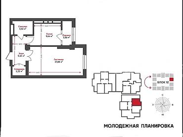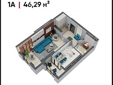 Продаётся 1-комнатная квартира (46.29 м²) в современном монолитном доме (элитка) на 3 этаже из 16.
