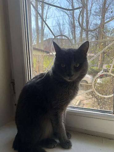 Кошка, окраса серый табби. Компактное телосложение, выразительные янтарные глаза, аккуратные белые носочки на лапах. Хвост пушистый, с тёмным кончиком. Характер и поведение: - активная и любознате...