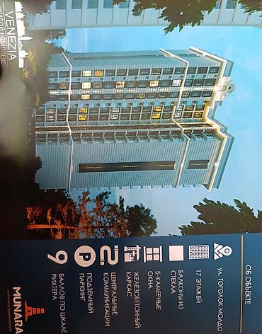 1-комнатная квартира в жилом комплексе Venezia. Строительная компания "Munara". ПСО будет сдан 4 квартал 2026 года.