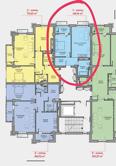 1 комната, 48 м²