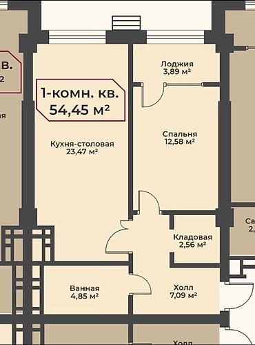 1 комната, 48 м², Элитка, 12 этаж, Готовая ПСО (под самоотделку)