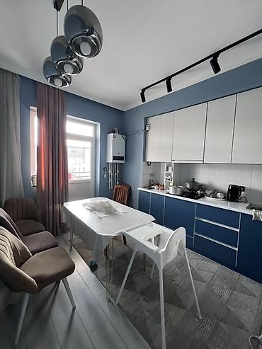- Кухня: линейный гарнитур с глянцевыми фасадами, встроенная газовая варочная поверхность, вытяжка, мойка из нержавеющей стали. Рабочая столешница по всей длине, множество систем хранения. Установлен настенный газовый котёл (индивидуальное отопление и горячая вода). Трековое и подвесное освещение, выход на балкон/лоджию, просторная зона для обеденного стола.