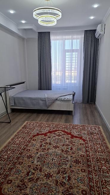 - Просторная комната с двуспальной кроватью, прикроватной тумбой, кондиционером и панорамным окном. Потолочные светильники с регулировкой света, плотные шторы и тюль.