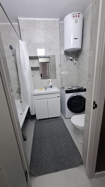 - Санузел совмещенный: ванна с душем и шторкой, умывальник с тумбой и зеркалом, унитаз, стиральная машина, электрический водонагреватель.