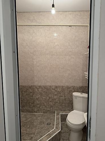 - Санузел совмещённый, полностью в плитке; душевая зона с трапом, унитаз, раковина.