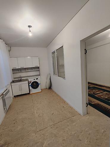 - Планировка: прихожая-кухня и изолированная комната, между ними — дверь и внутреннее окно.
