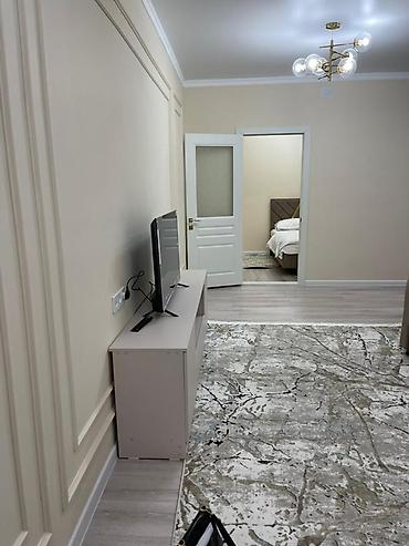- Спальня: двуспальная кровать с комплектом постельного белья, рулонные шторы на окнах.