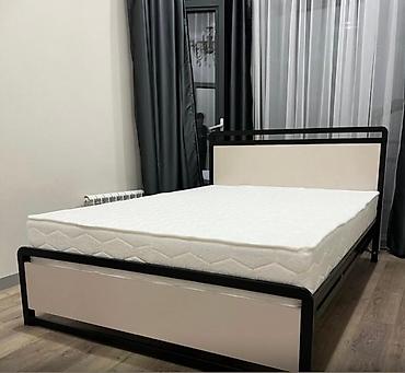 - Просторная спальня с двуспальной кроватью: металлический каркас с мягкими вставками и ортопедическим матрасом.