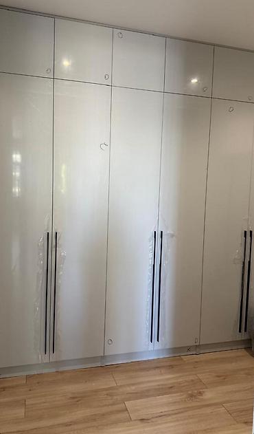 - Вместительные шкафы-купе/распашные шкафы во всю стену с длинными вертикальными ручками для удобного хранения.