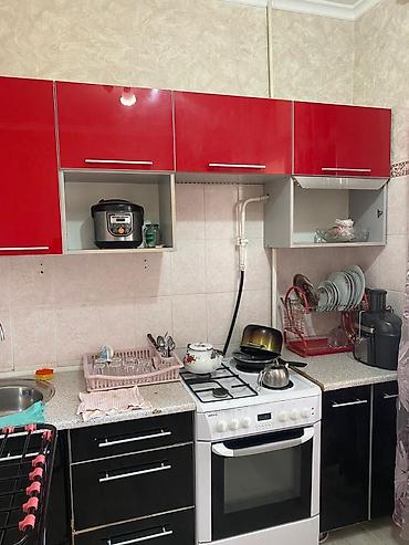 - Отдельная кухня с гарнитуром: верхние глянцевые шкафы, нижние тумбы, рабочая столешница, мойка, сушилка для посуды.