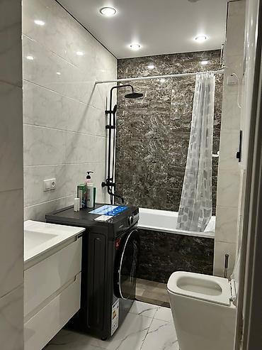 - Пластиковые шторы на ванной, плотные шторы в спальне.