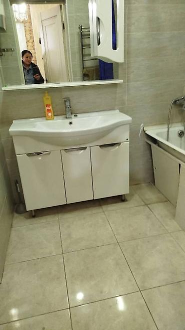 - Санузелом и ванной, тумбой-раковиной с тремя секциями хранения, зеркальным шкафчиком и полотенцесушителем.