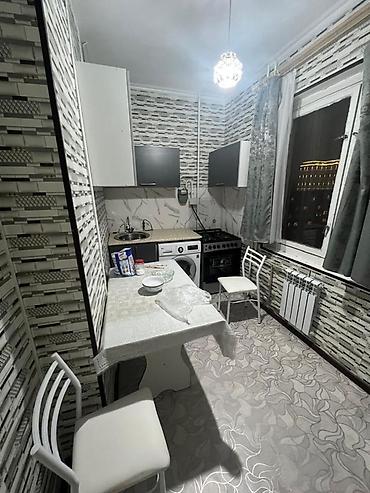 - Кухня с полноценным обеденным местом: стол, два стула, навесные шкафы, мойка, рабочая поверхность.