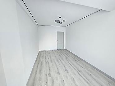 Интерьер выполнен в минималистичном стиле: ровные белые стены, натяжные потолки с тонким теневым профилем, единое напольное покрытие по всей квартире. Готово к расстановке мебели и техники.