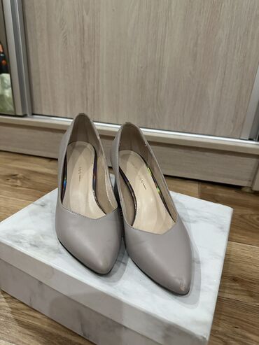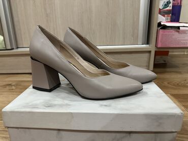 Классические туфли в отличном состоянии, производство Испания,кожа, размер 38,5-39, высота каблучка 7 см, очень удобная колодка. Цена 1000 сом каждая пара туфлей.