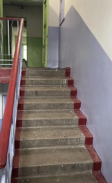 - Этаж в старом кирпичном/панельном доме; вход через общий подъезд с лестницей.
