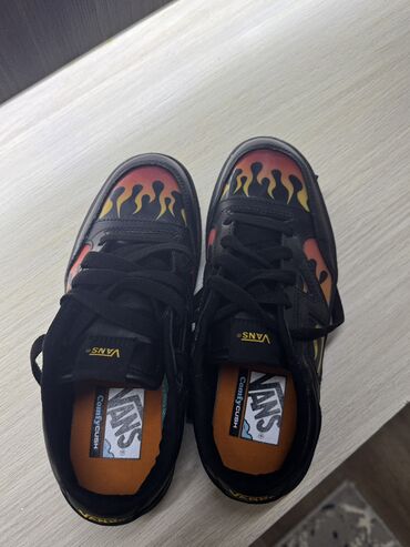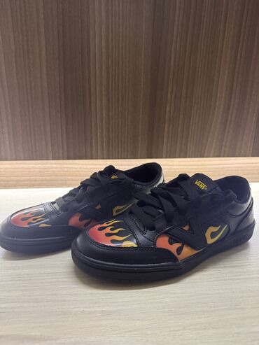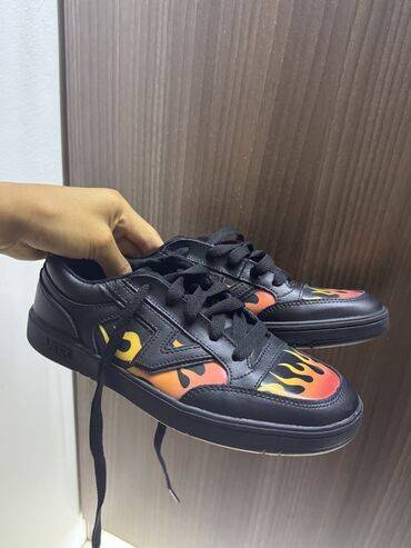 Кеды Vans Sk8-Hi с высоким профилем, выполненные в черном цвете с ярким оранжево-желтым пламенным принтом по бокам. Классическая белая полоса Vans Sidestripe дополняет дизайн. Модель оснащена белой...