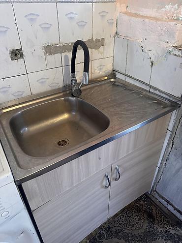 Кухонный шкаф с раковиной и смесителем 15000сом Офисный стол +4 стула; 5000 сом