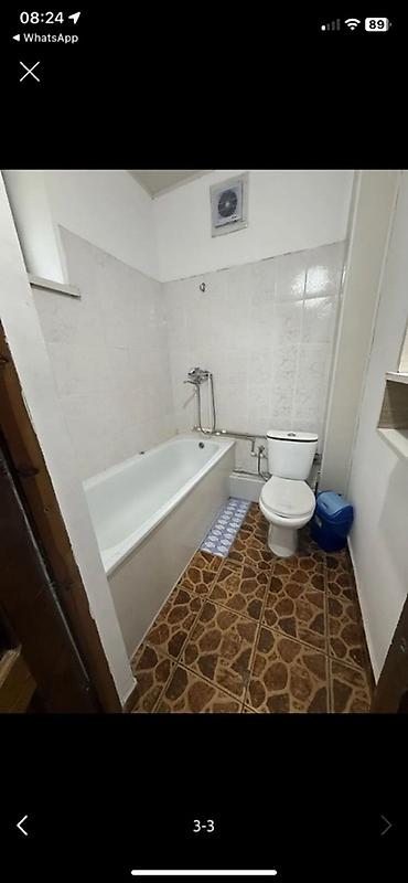 - Санузел: совмещенный — ванна стандартного размера, унитаз, вытяжка, кафель на стенах и полу, небольшое окно/ниша для проветривания.