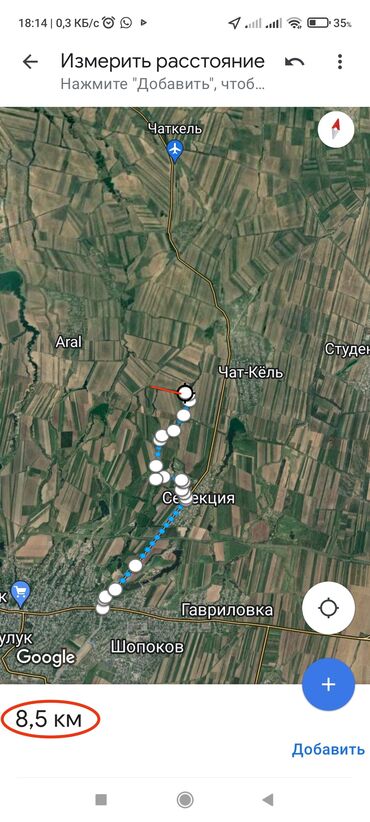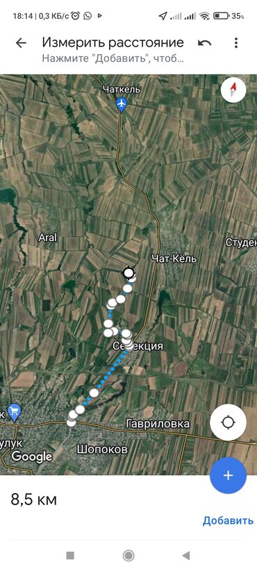 Продажа земельного участка сельхозназначения, площадью S= 5га город Кант. Характеристики: - Площадь: 49 826,83 м² (≈4,98 га), по замеру на карте. - Периметр: 1 079,23 м. - Форма: вытянутый прямоуг...