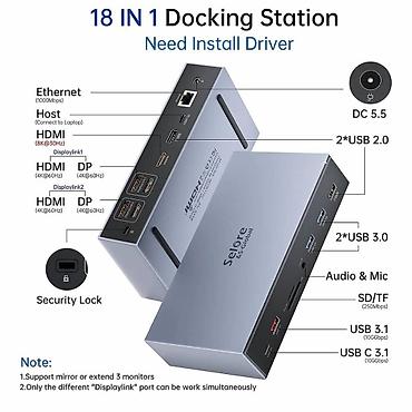 🔌 18-in-1 Универсальная Док-станция (Selore & Global) • 4K/8K • DisplayLink • Цена: 7500 сом