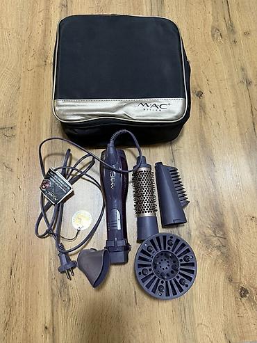- Насадки в комплекте: диффузор для объёма, круглая термощётка (брашинг), концентратор, гребень-выпрямитель.