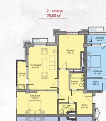 2-комн, 79 кв.м