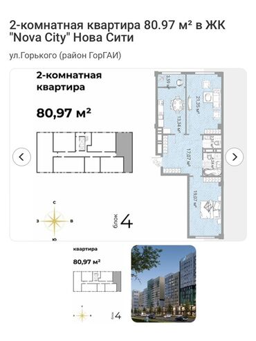 Предлагается двухкомнатная квартира площадью 80,97 м² в жилом комплексе «Nova City». Этот комплекс расположен по улице Горького (район ГорГАИ), рядом с Тойота Цетр, Технопарк. Планировку при желании можно переделать на 3-х ком.кв.