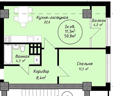 - Общая площадь: 50,8 м²