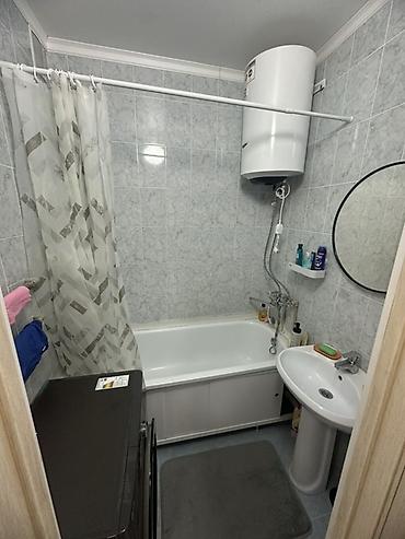 - Санузел совмещённый: ванна, раковина на пьедестале, зеркало, водонагреватель накопительный и стиральная машина.