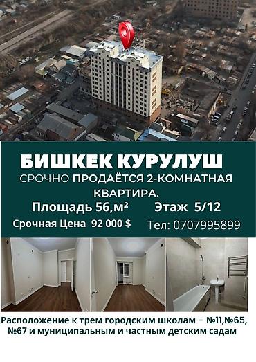 Просторная квартира площадью 56,02м² в готовом доме от надёжного застройщика Бишкек Курулуш.