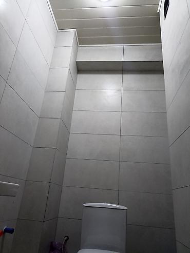 - Туалет в едином стиле: полная облицовка плиткой, скрытая полка‑ниша.