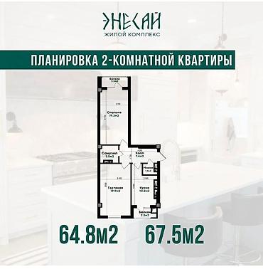 ЖК «Энесай». 2‑комнатная квартира, 50% оплачено, остальную сумму ежемесячно по 90 тыс. до 06.2028. Сдача дома 08.2028 ПСО (под самоотделку). Можно заехать