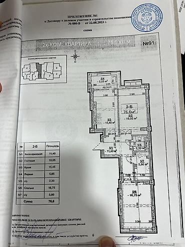 2-комнатная квартира в ЖК «Капстрой Сити» (СК Капстрой КЖ), мкр Асанбай (пересечение ул. Советская/Магистраль). - Площадь: 77,05 м² - Этаж: 8 из 14 - Отопление: газовое, подключено - Документы: ДД...