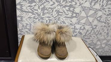 - Модель: короткие угги с пышной опушкой из натурального меха лисы/енота в бежево-песочном тоне