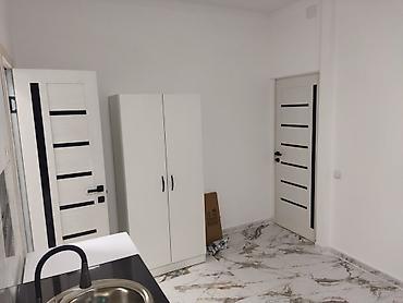 - Межкомнатные двери в едином стиле (белые с темными вставками).