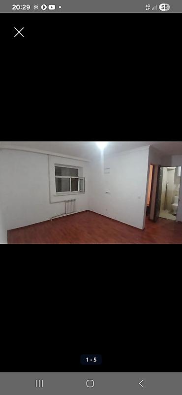 - Просторная комната-студия с окном, радиатором отопления и ровными светлыми стенами.