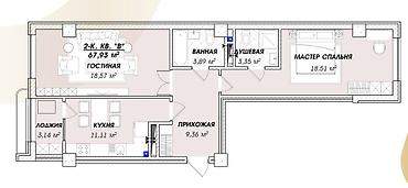 2 комнаты, 74 м², Элитка, 11 этаж, Готовая ПСО (под самоотделку)