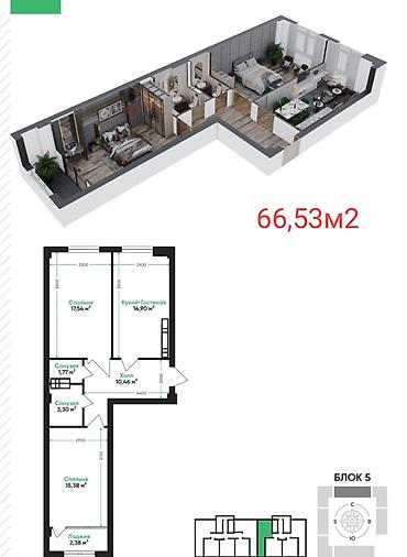 120 000 USD3 комнаты, 64 м², 106 серия, 7 этаж, Готовая ПСО (под самоотделку)