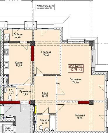 3 комнаты, 103 м², 12 этаж, Готовая ПСО (под самоотделку)