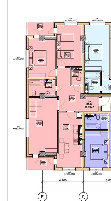 3 комнаты, 94 м², Без мебели