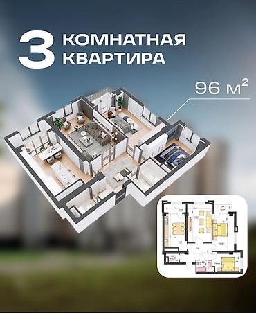3‑комнатная квартира в новом жилом комплексе, 96 м²