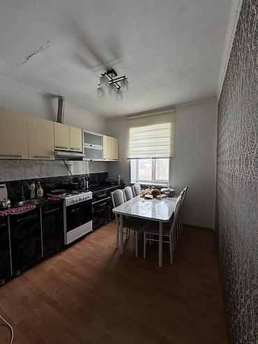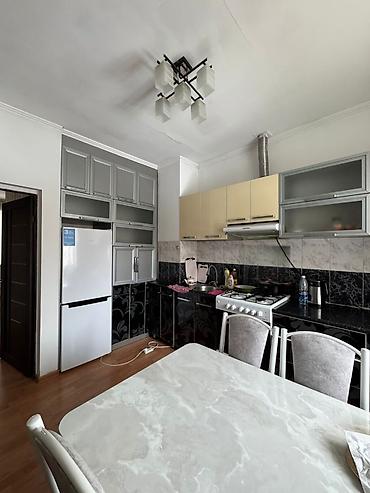 - Кухня: линейный гарнитур с верхними и нижними шкафами, варочная поверхность/газовая плита с духовкой, вытяжка, мойка, рабочая столешница; вместительный холодильник; большой стол на 6–8 персон; окно с рулонной шторой.